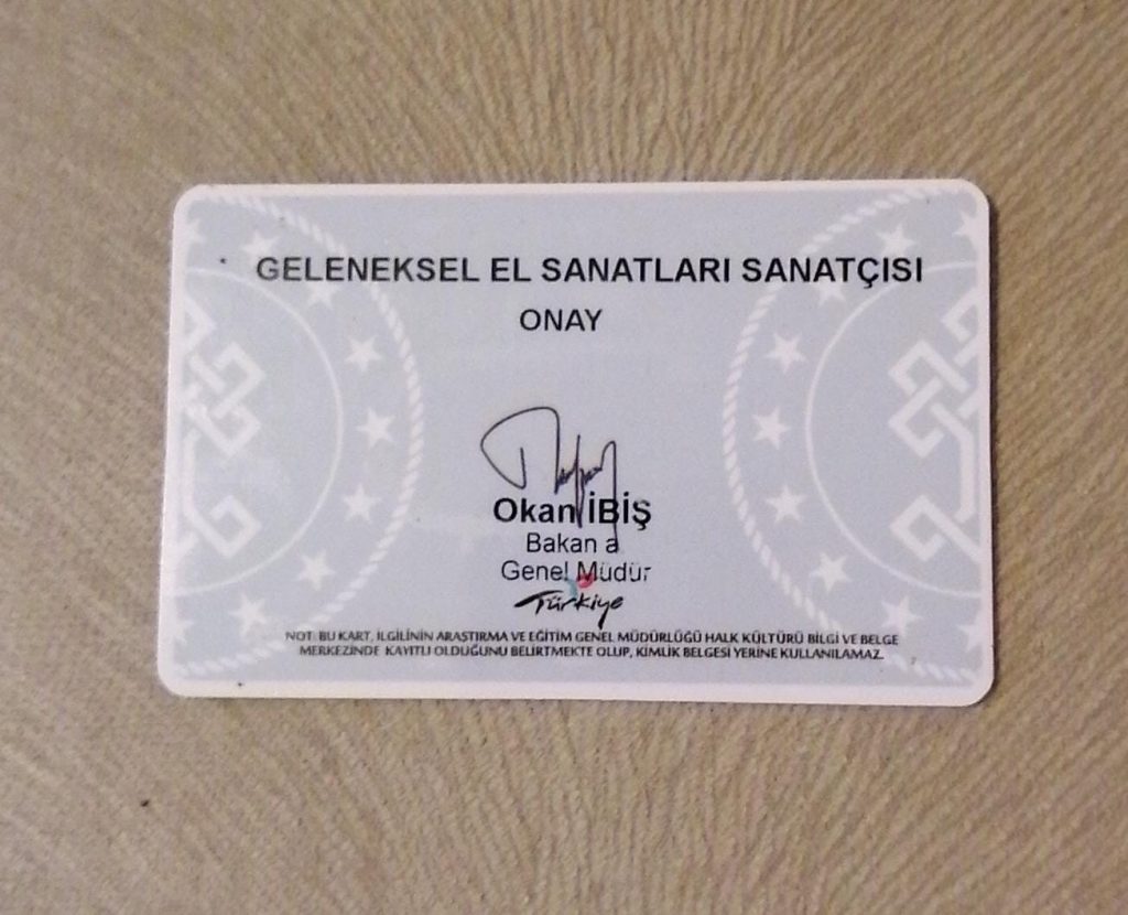 T.C. Kültür ve Turizm Bakanlığı’na Kayıtlı Geleneksel El Sanatları Seramik Sanatçı Kartı